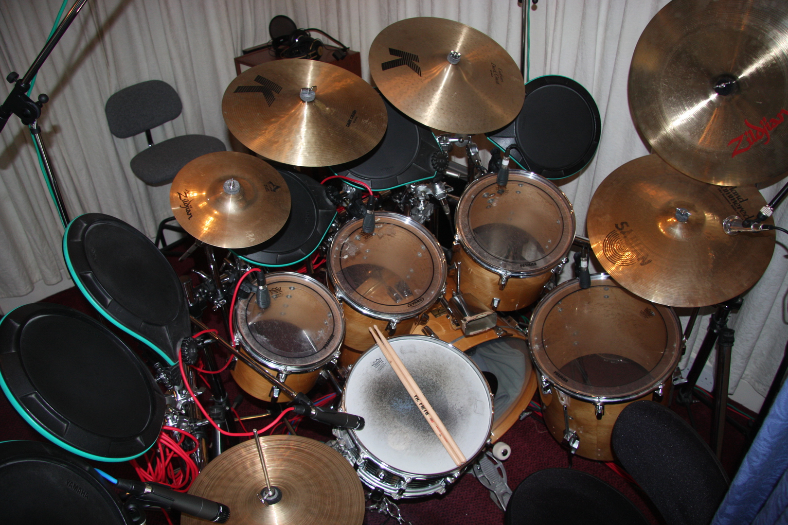 Our small live room houses a Pearl Pro DX series drum kit incorporating a Yamaha 7 pad electronic kit. This room can also be used as a solo booth for vocals, guitars etc.